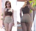 ボリューミーなお姉さんお尻の溝がくっきりなのもそそります