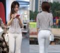 Oh!エロ清楚な白ツンパ姑娘♪お顔は、草刈民代似の美人さん(*^^)vノーパンかと思ったら、目を細めて見れば淡いブルーのTバック穿いてます・穿いてますgakiさん、感謝!